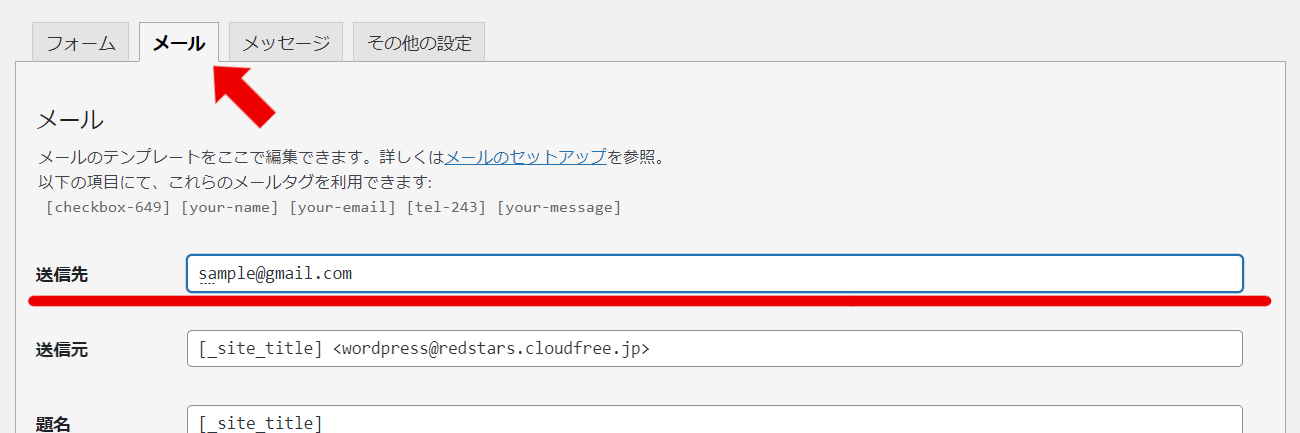 問合せメール転送先の設定