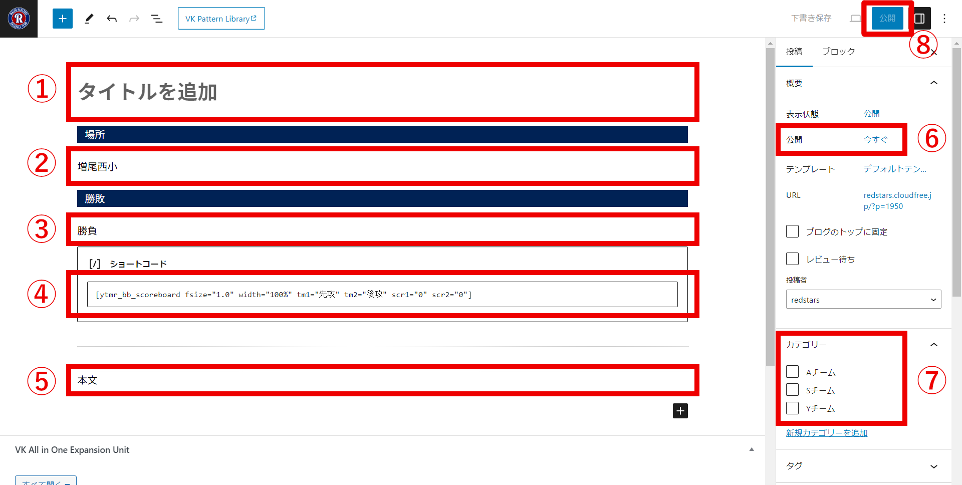 上記7項目の記入・選択が終わりましたら、「公開」をクリックし、記事を公開してください。