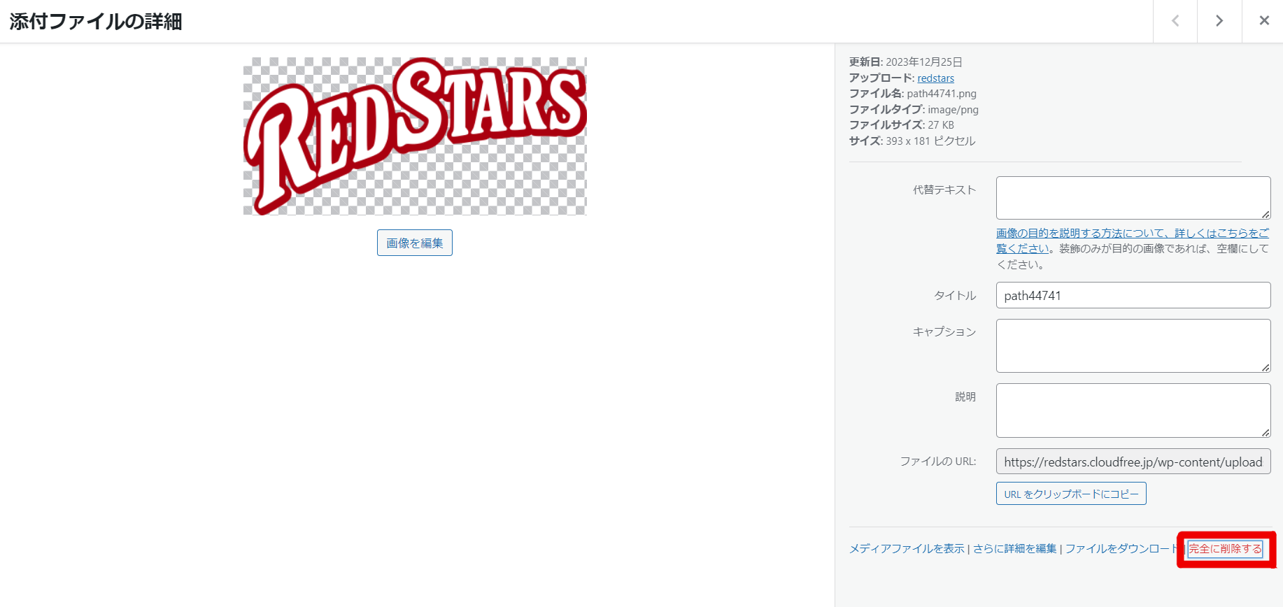 メディアライブラリの画像削除